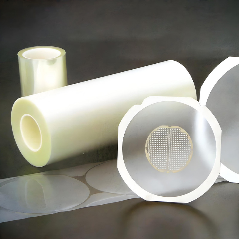 UV tape is specially designed for positioning and cutting tapes in the process of SMD electronic components, SMT component tapes, MLCC chip capacitor tapes, and chip inductor; semiconductor chip surface processing tapes; electronic and optoelectronic industry component manufacturing and processing engineering tapes; LCD and TP touch panel glass thinning, grinding and polishing tapes; LED cutting grinding and polishing tapes; sapphire substrate thinning and grinding process tapes; wafer grinding, cutting, various silicon wafers, packaging substrates, ceramics, glass, crystal fine electronic parts bearing processing and various materials of small parts processing and cutting. Coated with special adhesive, with high adhesion, it can stick to the chip with super strong adhesion during cutting, even small chips will not be displaced or peeled off, so that the chip will not fall off or fly away during the grinding and cutting process, prevent edge collapse, and can be cut accurately without expansion, ensuring processing quality. After processing, the adhesion can be instantly reduced by irradiating with an appropriate amount of ultraviolet light. Even large chips can be easily and correctly picked up without residual adhesive or contamination. The pick-up performance is improved when picking up the chip. There is no contamination caused by adhesive contamination, and there will be no adverse effects on the IC due to ultraviolet radiation.